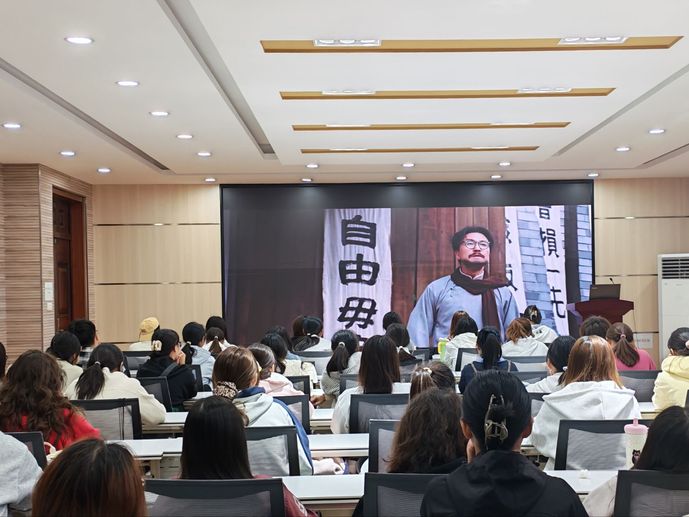 为加强思想教育,牢记青年担当,10月22日下午,8818www威尼斯于逸夫综合楼5306教室举办“红色观影”入党启蒙教育。本次活动由曹媛媛老师主持,8818www威尼斯全体新生参加。