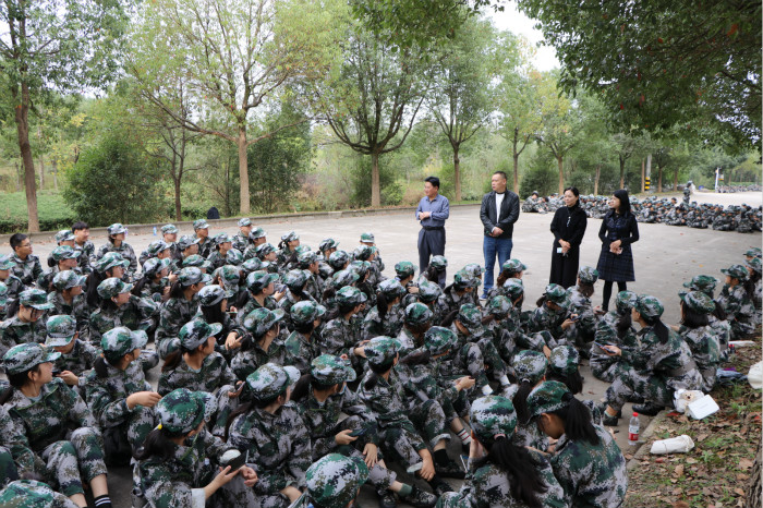 10月14日,8818www威尼斯党政领导来到率水校区军训队列中看望并慰问新生。