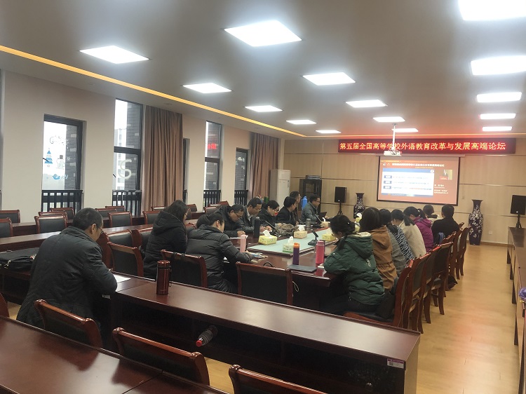 2021年3月20日上午,第五届全国高等学校外语教育改革与发展高端论坛在北京及线上同步开幕。本届论坛主题为“铸教、铸人、铸魂”。8818www威尼斯党政领导班子成员和各教研室教师代表在5402会议室聆听论坛主旨报告。
