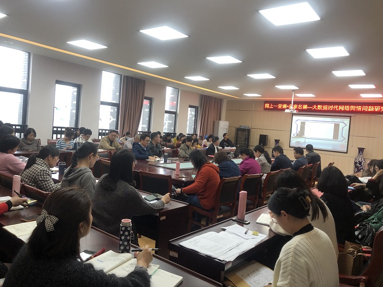 本期名家名课邀请的授课专家为邀请教育部网络教育名师、桂林电子科技大学马克思主义学院院长邓国峰教授,授课专题为“大数据时代网络舆情问题研究”。邓教授以睿智、幽默风趣的台风赢得老师们阵阵掌声。