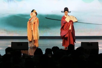風起兮汉文化阁的《一襟风雅·半袖清欢》汉服秀重现华夏衣之美,院舞蹈队《寄明月》以折扇舞演绎传统与现代的对话,大学生艺术团话剧队的话剧《最后一站》以生动的演绎为晚会增添更多欢乐,23英语2班梁雯熹的流行舞串烧展现流行文化魅力古今交融的表演生动展现了学子多元发展的综合素质,现场掌声不断