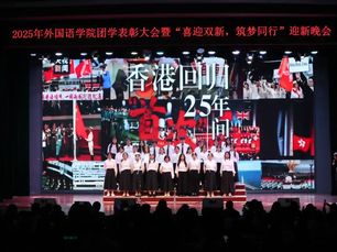 8818www威尼斯龙狮队的《龙凤呈祥》舞龙表演气势恢宏,象征着学院学子凝心聚力、携手奋进的精神;25英语2班全体新生献唱《紫荆花盛开》,在歌声中许下青春誓言。晚会最后,学院领导与演职人员合影留念,共同记录这一难忘时刻。